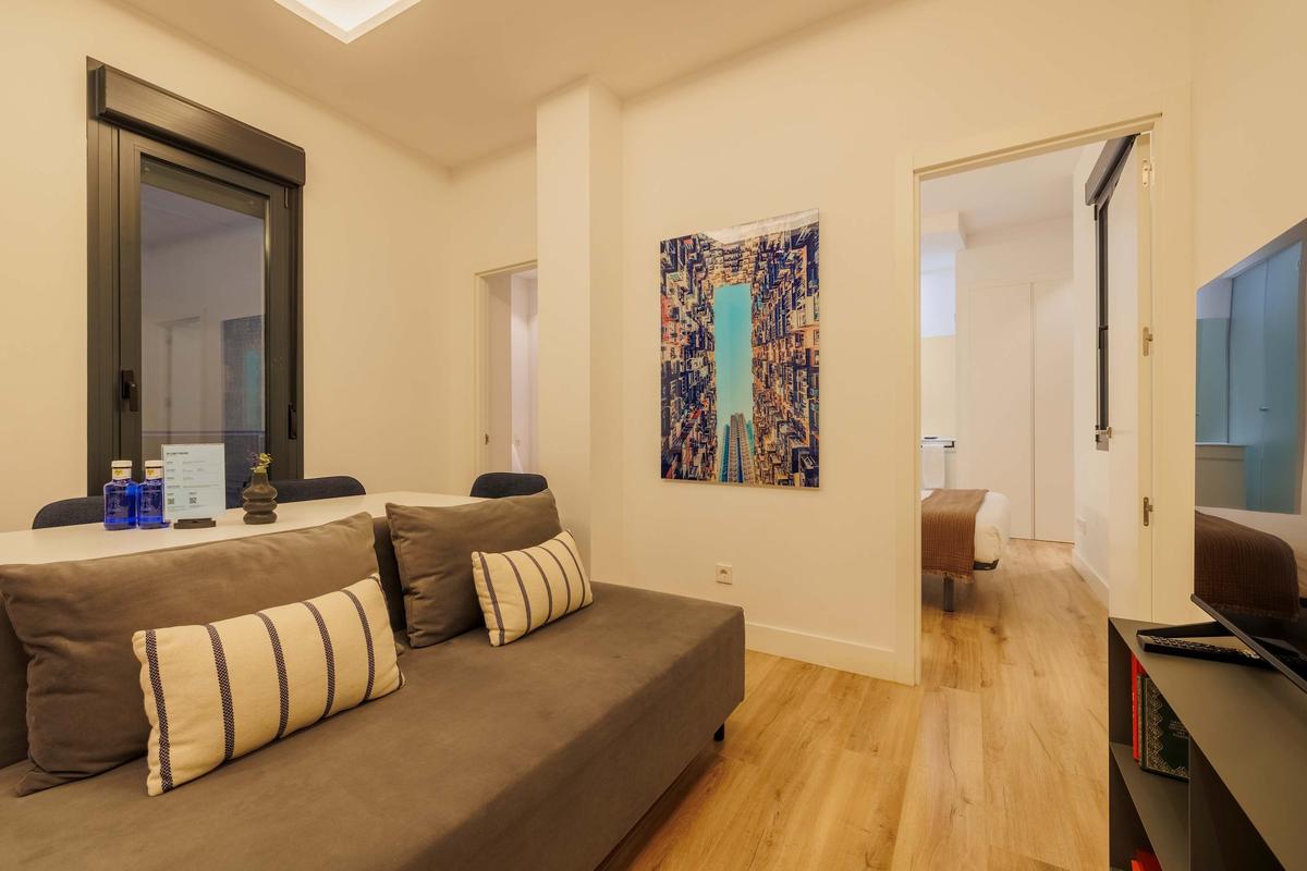 The apartment is located in the most turistic area of the heart of Madrid, only meters away from lovely restaurants, exclusive stores, historical sculptures, classical theaters, among other attractions.