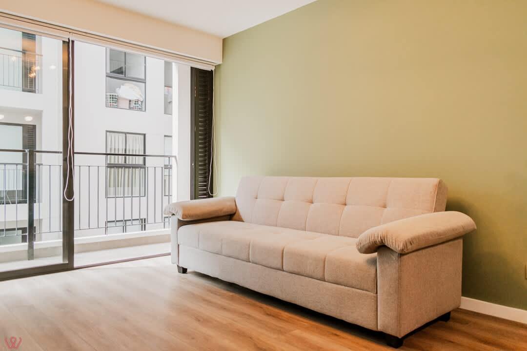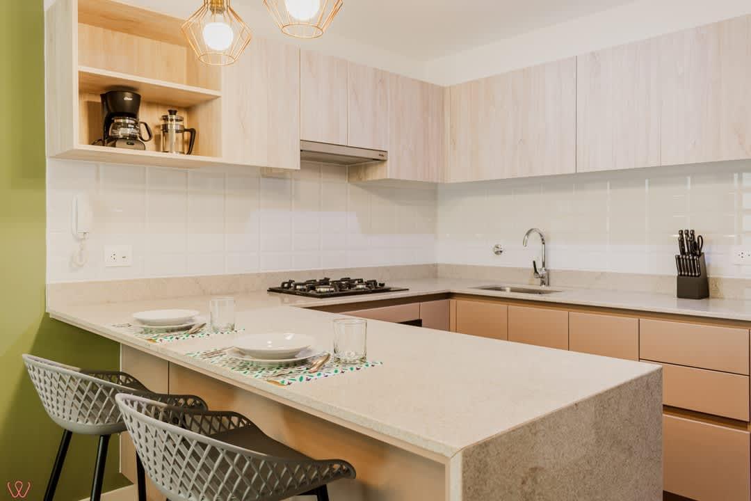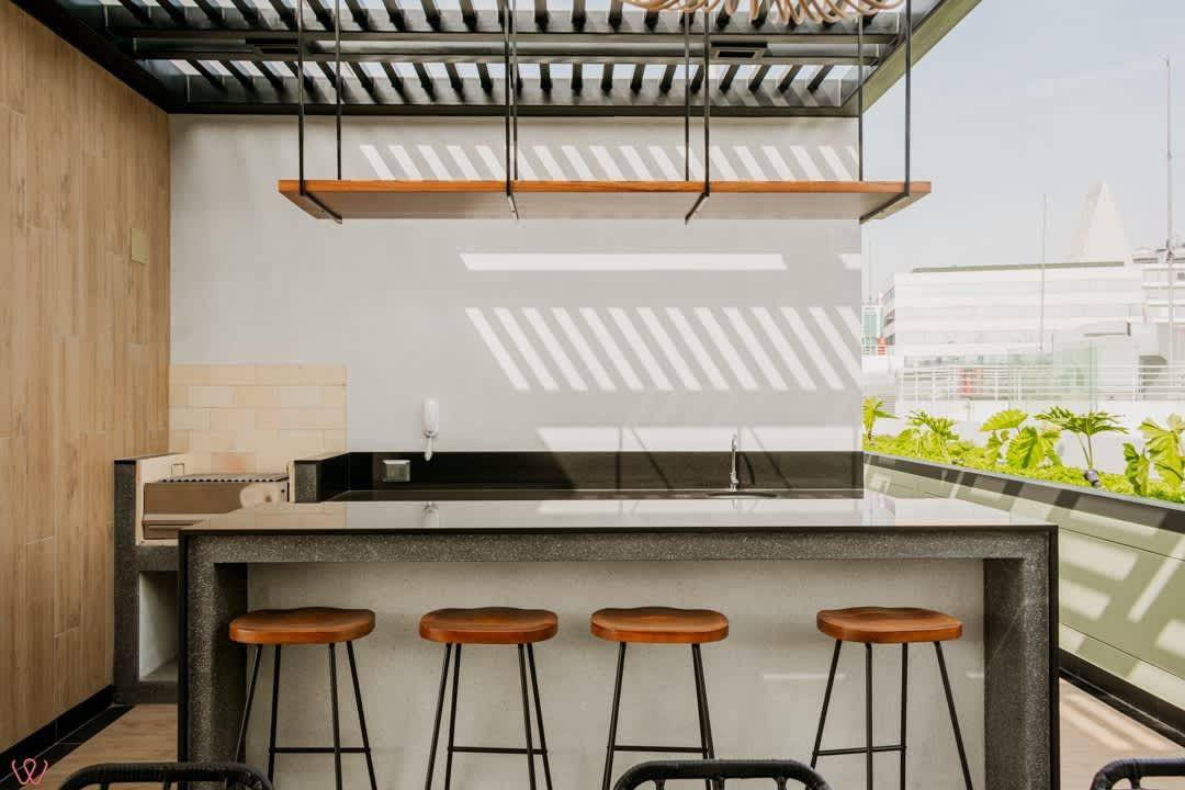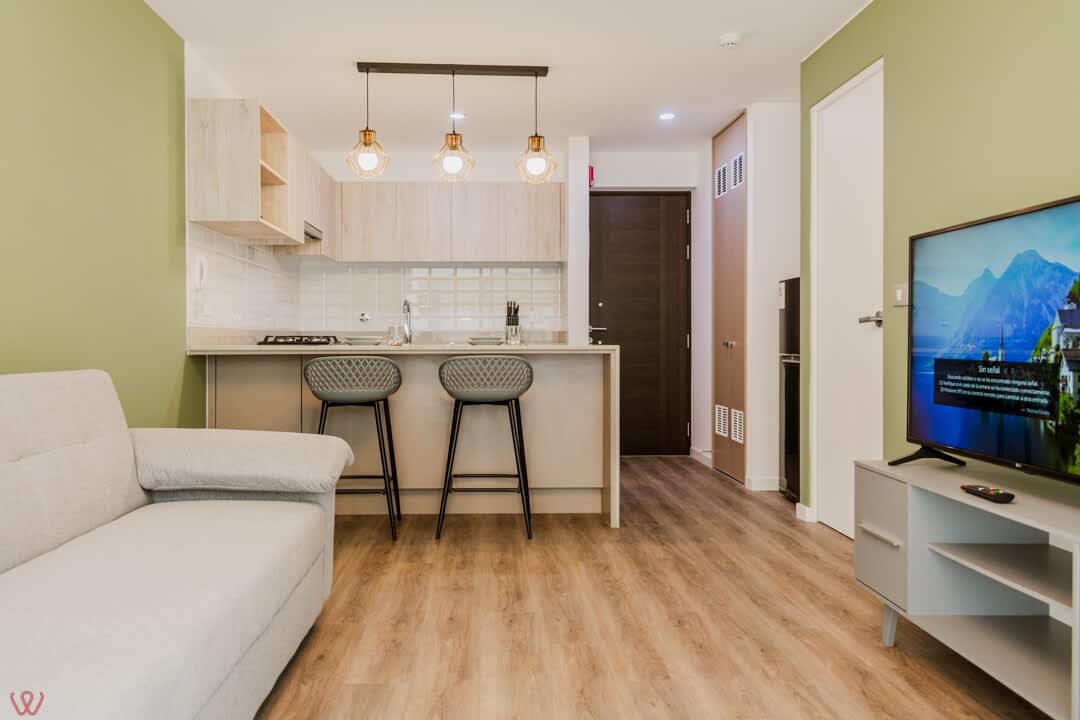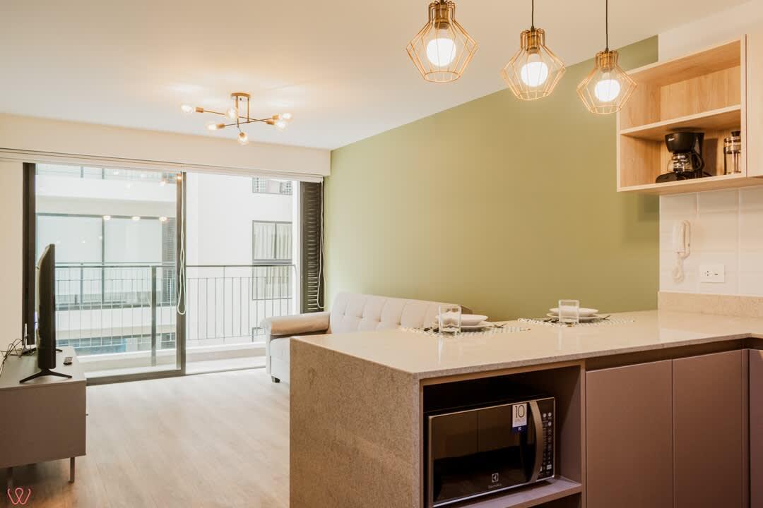 El edificio es seguro, tranquilo y tiene buena ubicación. El departamento tiene un diseño contemporáneo, cuenta con una habitación con baño completo, cocina equipada, ropa de cama, áreas disponibles para el uso del huésped (parrilla, gimnasio, coworking, lavandería) y mucho más.