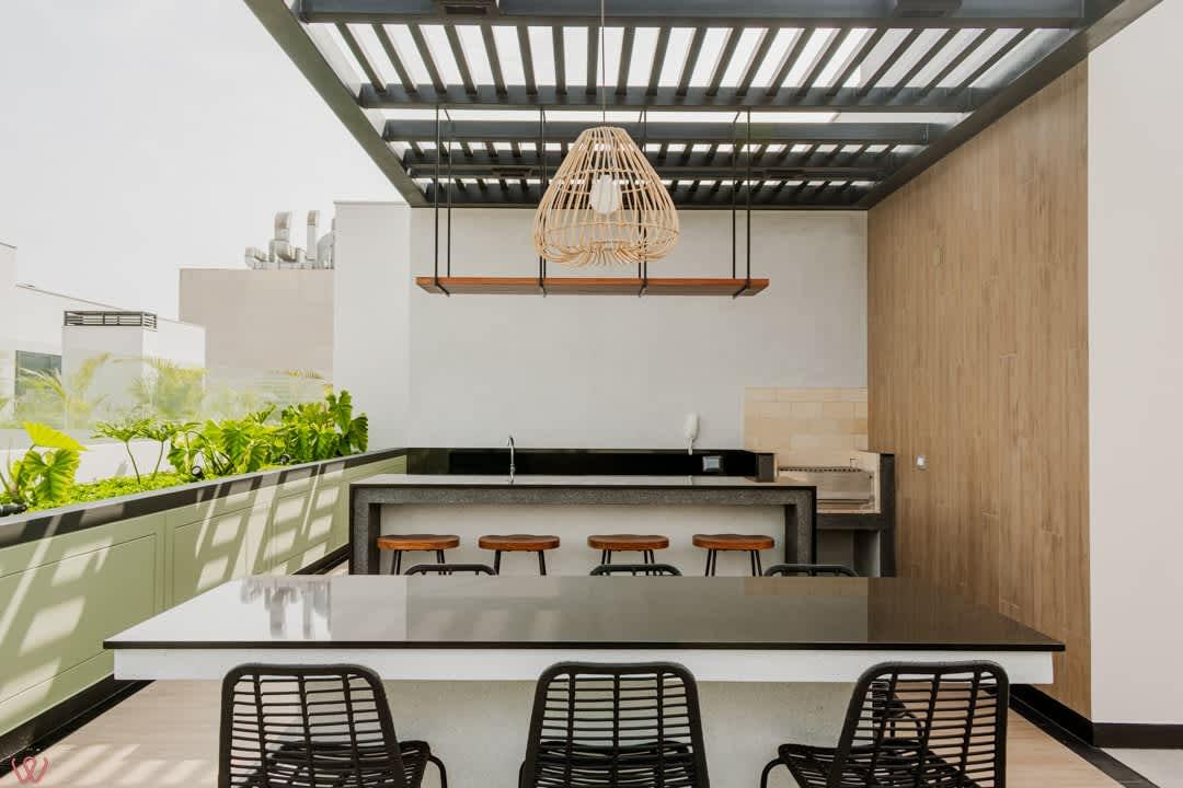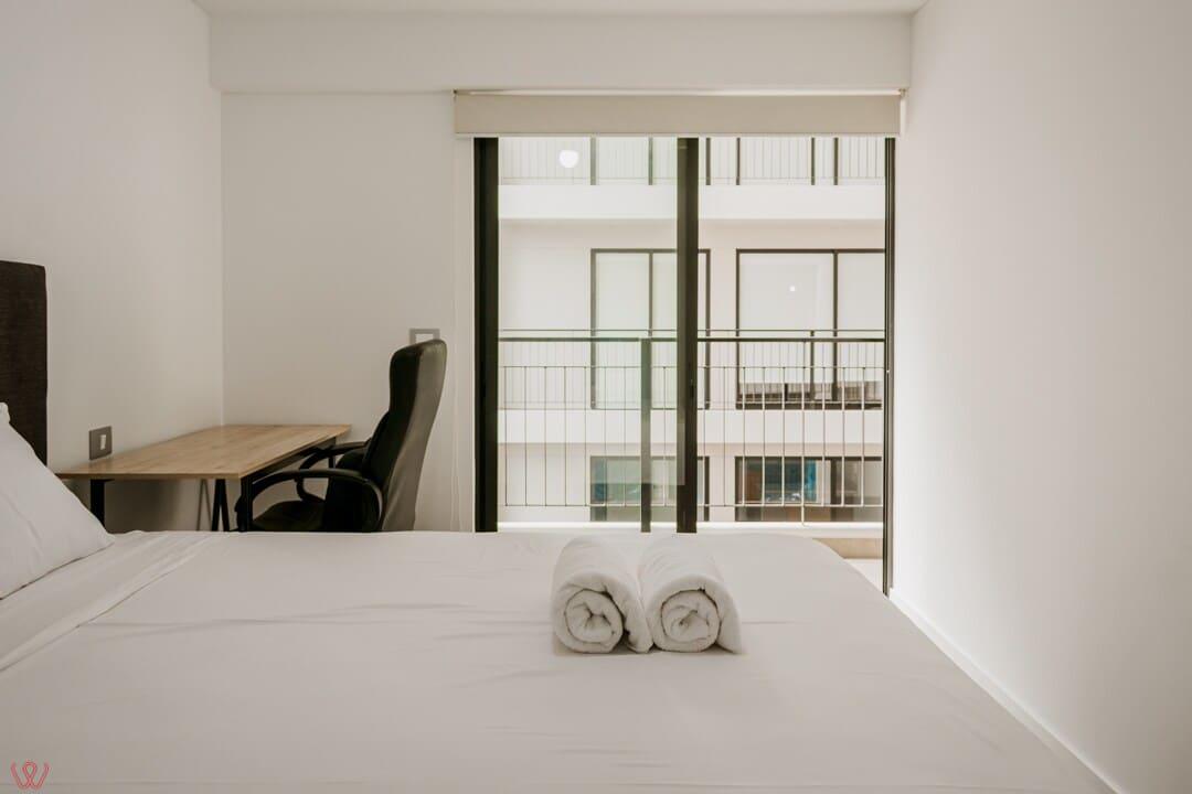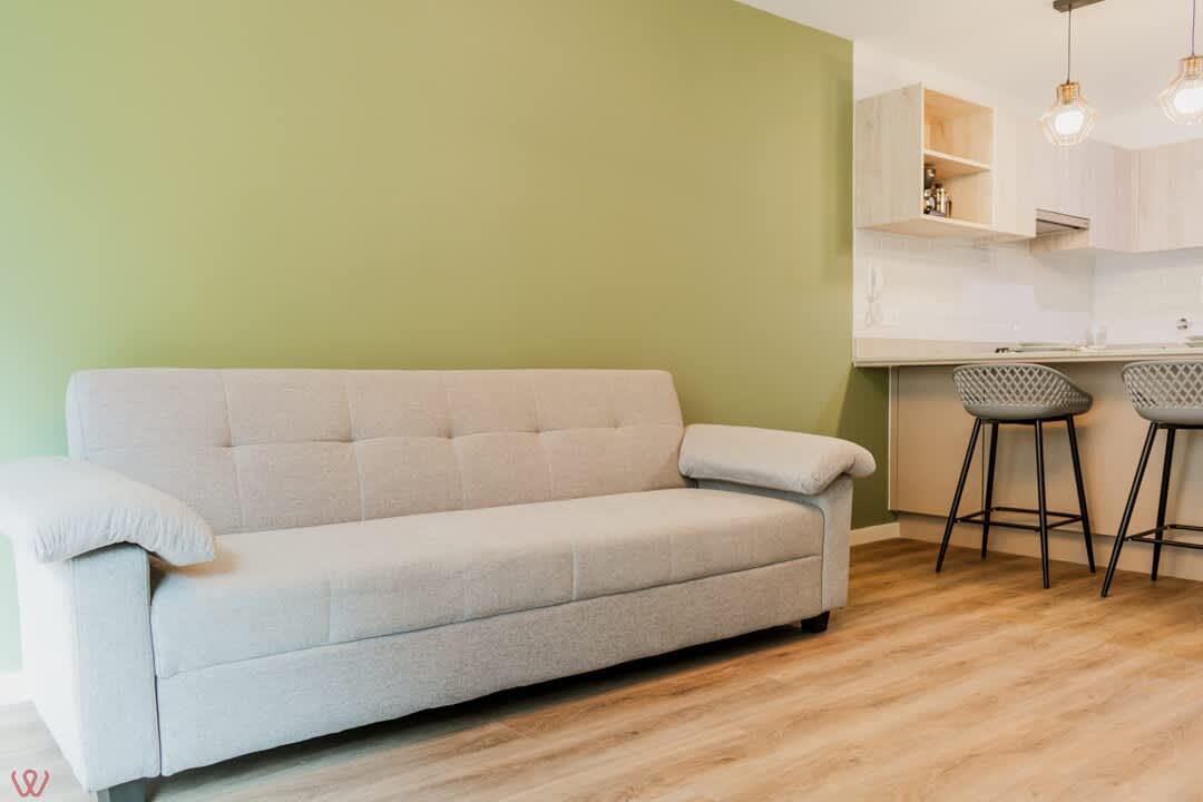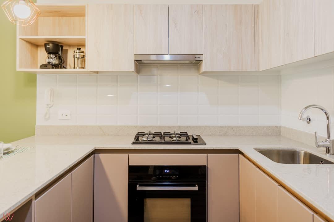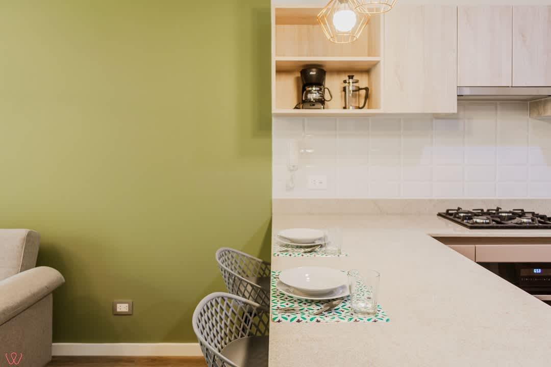 El edificio es seguro, tranquilo y tiene buena ubicación. El departamento tiene un diseño contemporáneo, cuenta con una habitación con baño completo, cocina equipada, ropa de cama, áreas disponibles para el uso del huésped (parrilla, gimnasio, coworking, lavandería) y mucho más.