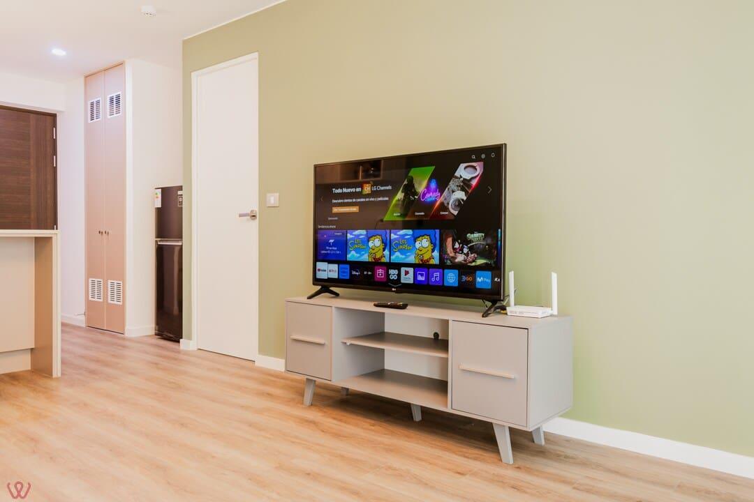 Moderno departamento de estreno en San Isidro, acondicionado para 2 huéspedes.