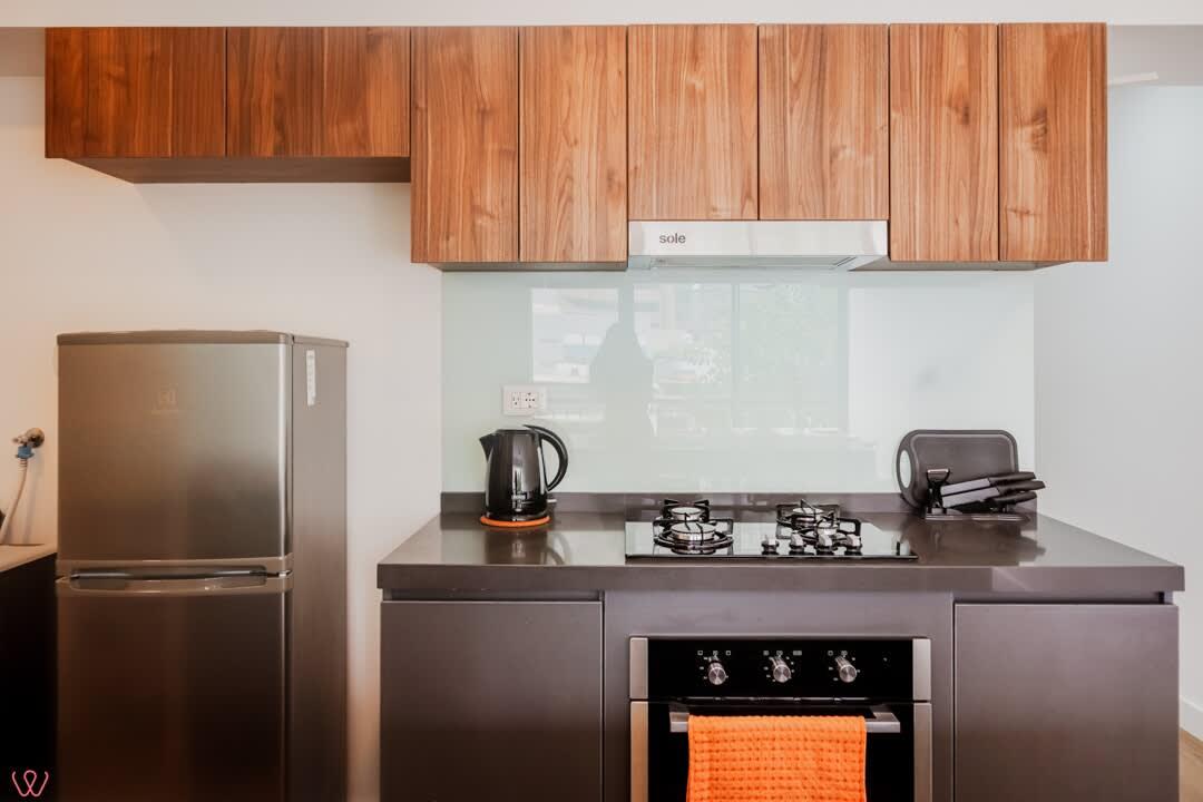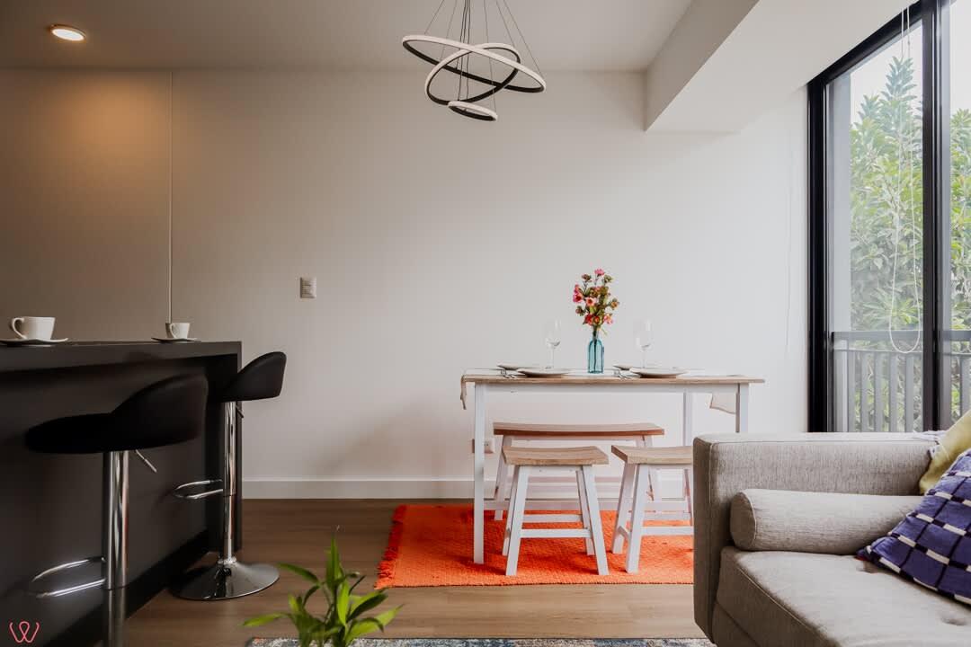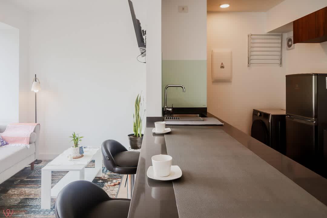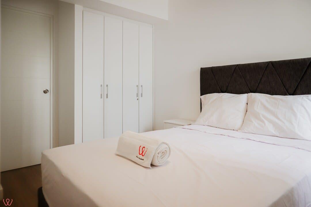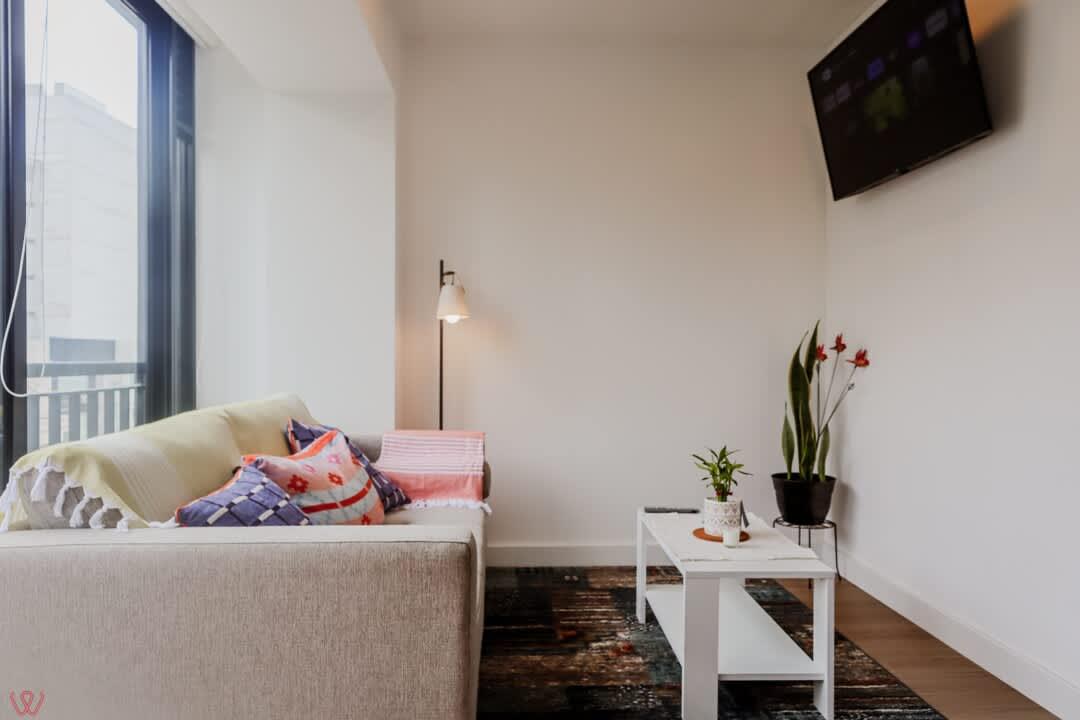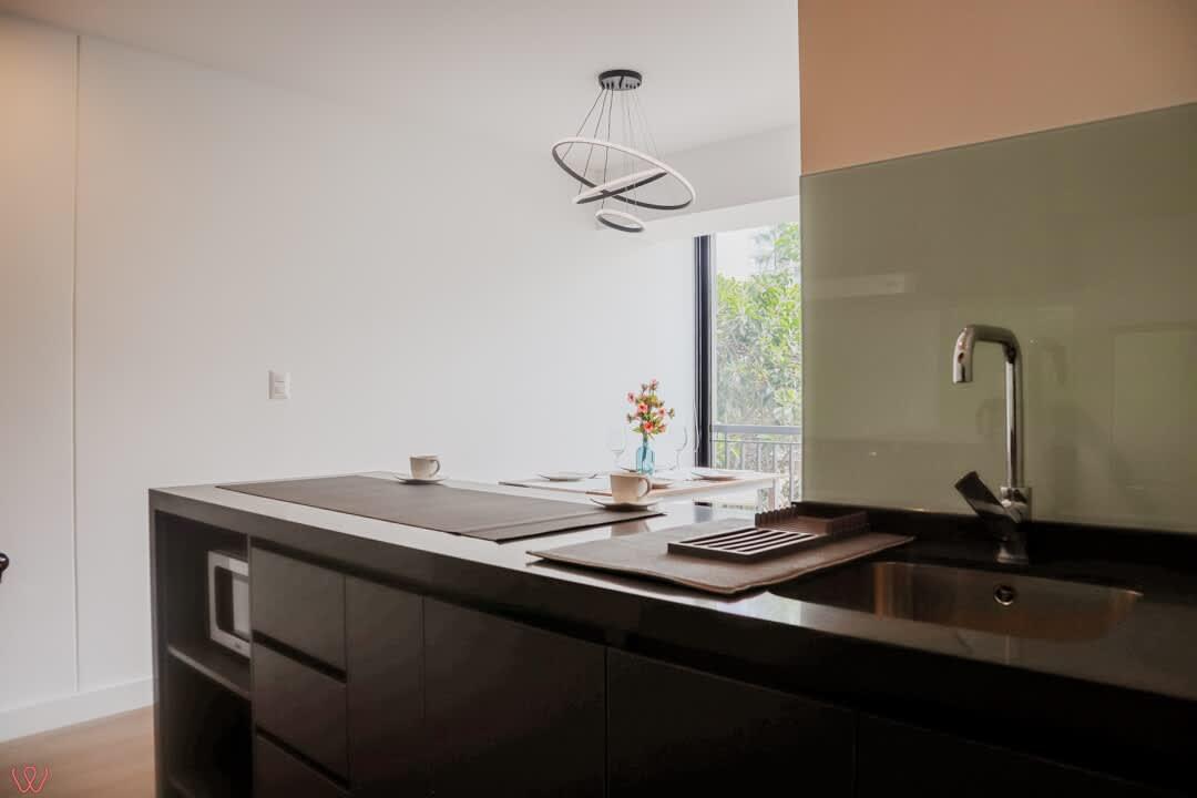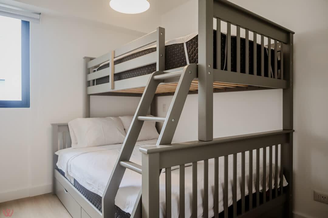 El edificio es seguro, tranquilo y céntrico. El departamento tiene un diseño moderno, cuenta con 2 habitaciones, 2 baños completos, cocina equipada, ropa de cama.