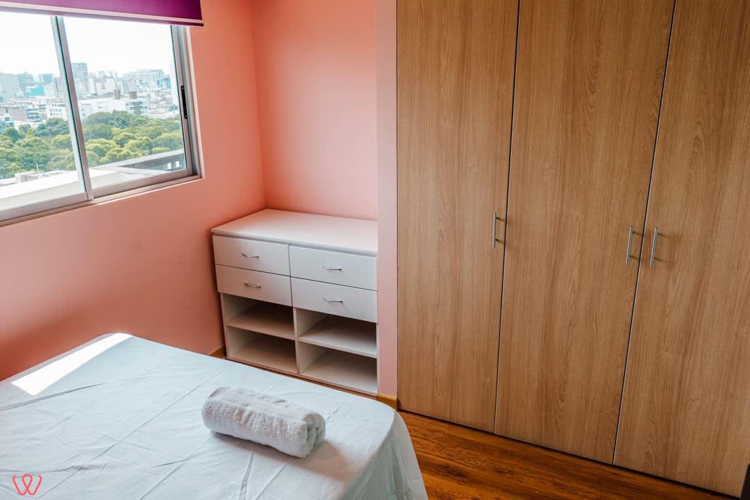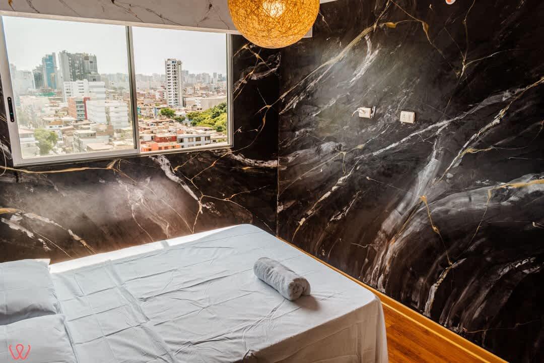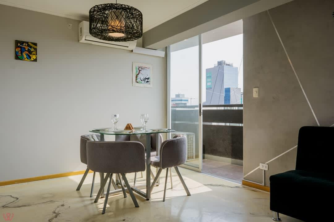 Modern apartment located at C. Los Mirtos 590, Lince. Features two single beds, two full bathrooms, and high-speed Wi-Fi. Equipped with a functional kitchen and a bright living area. Situated in a vibrant neighborhood close to Parque de la Exposición, Jockey Plaza Shopping Center, and easy access to Lima’s main business districts. Ideal for up to 3 guests.