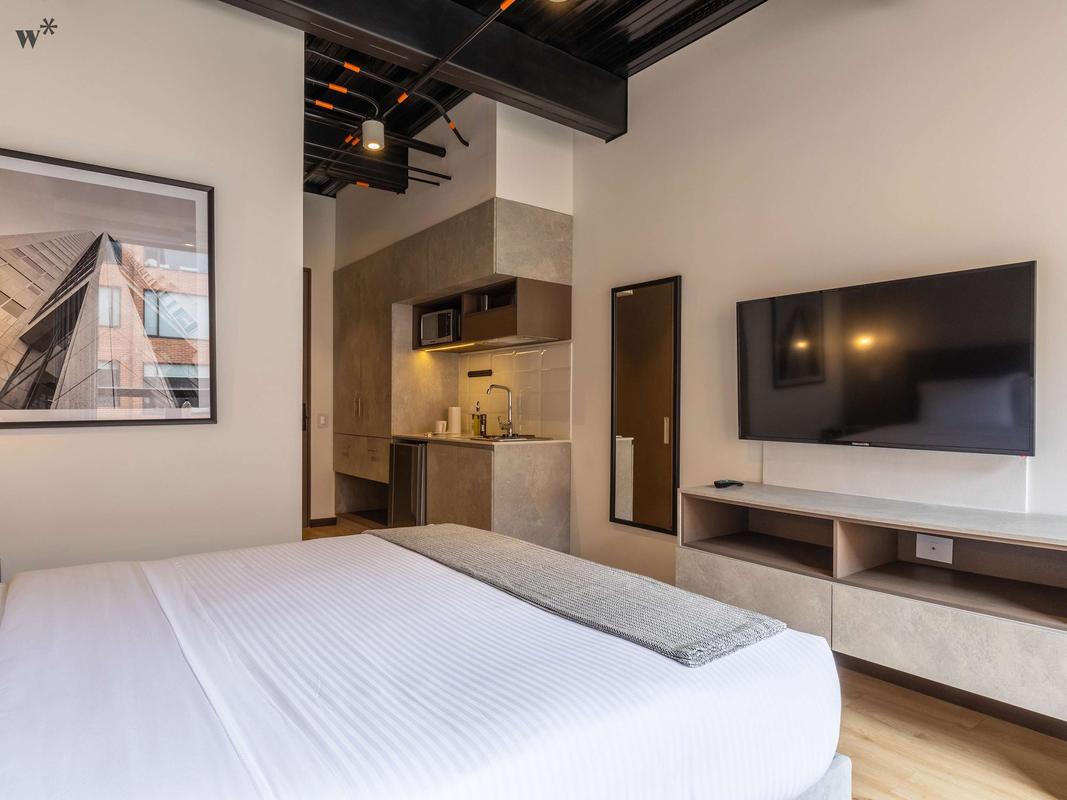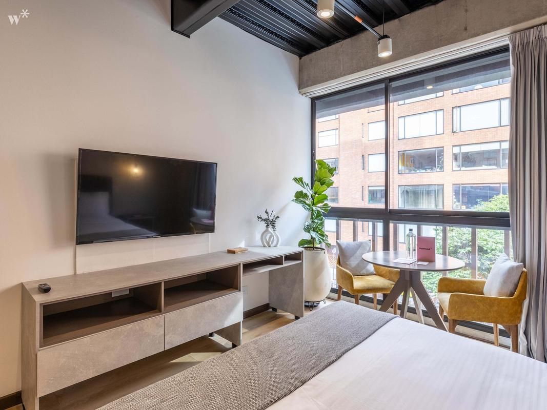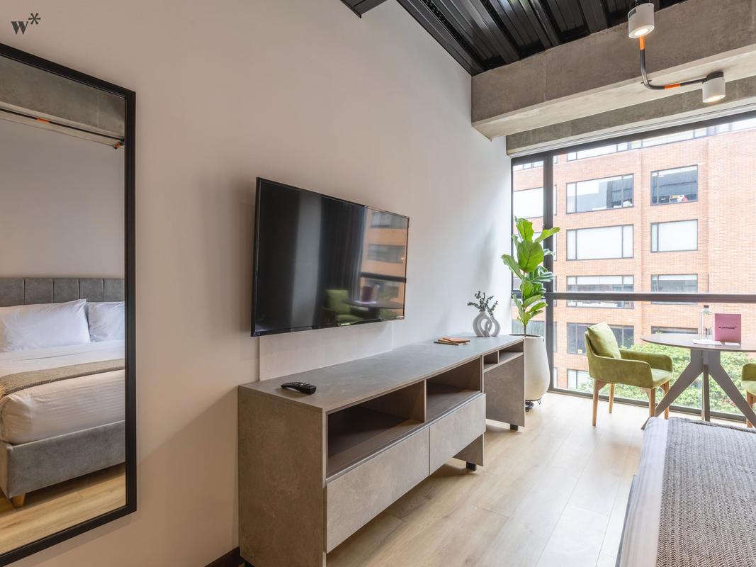 Located in the best area of Bogotá. Ideal for business trips, families and groups of friends who want to stay in a spacious modern loft. The apartment features a queen bed and a safe box.