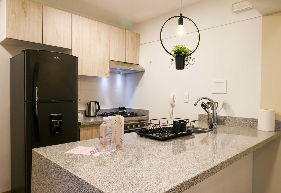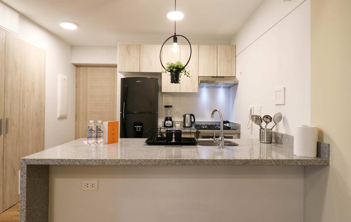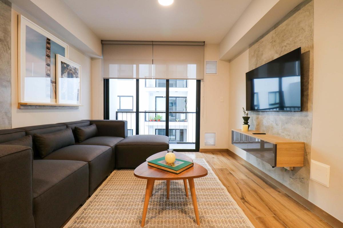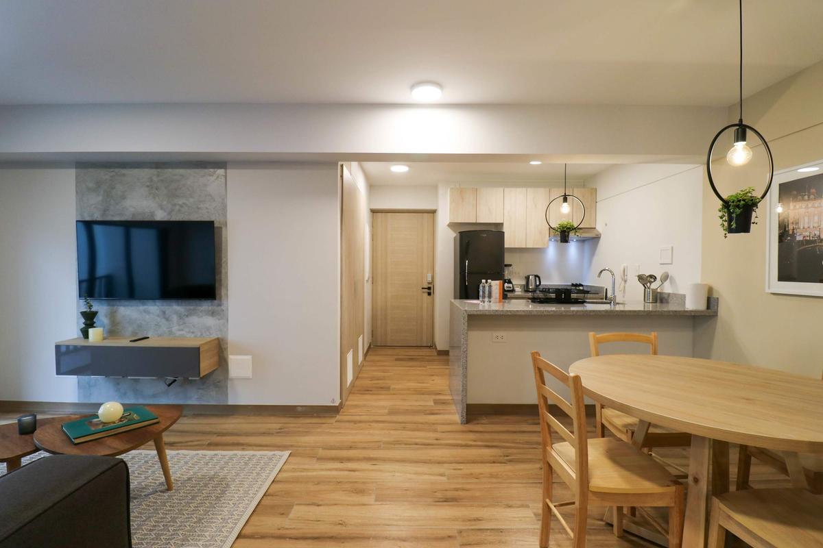 In the welcoming Miraflores neighborhood, this beautiful apartment it's very well located; just minutes away from Larcomar shopping center, Parque Kennedy, Virgen de Fatima Parish, and exclusive gyms. The area has currency exchange services, and labs centers in case you need to take a test, such as ROE and Multilab.