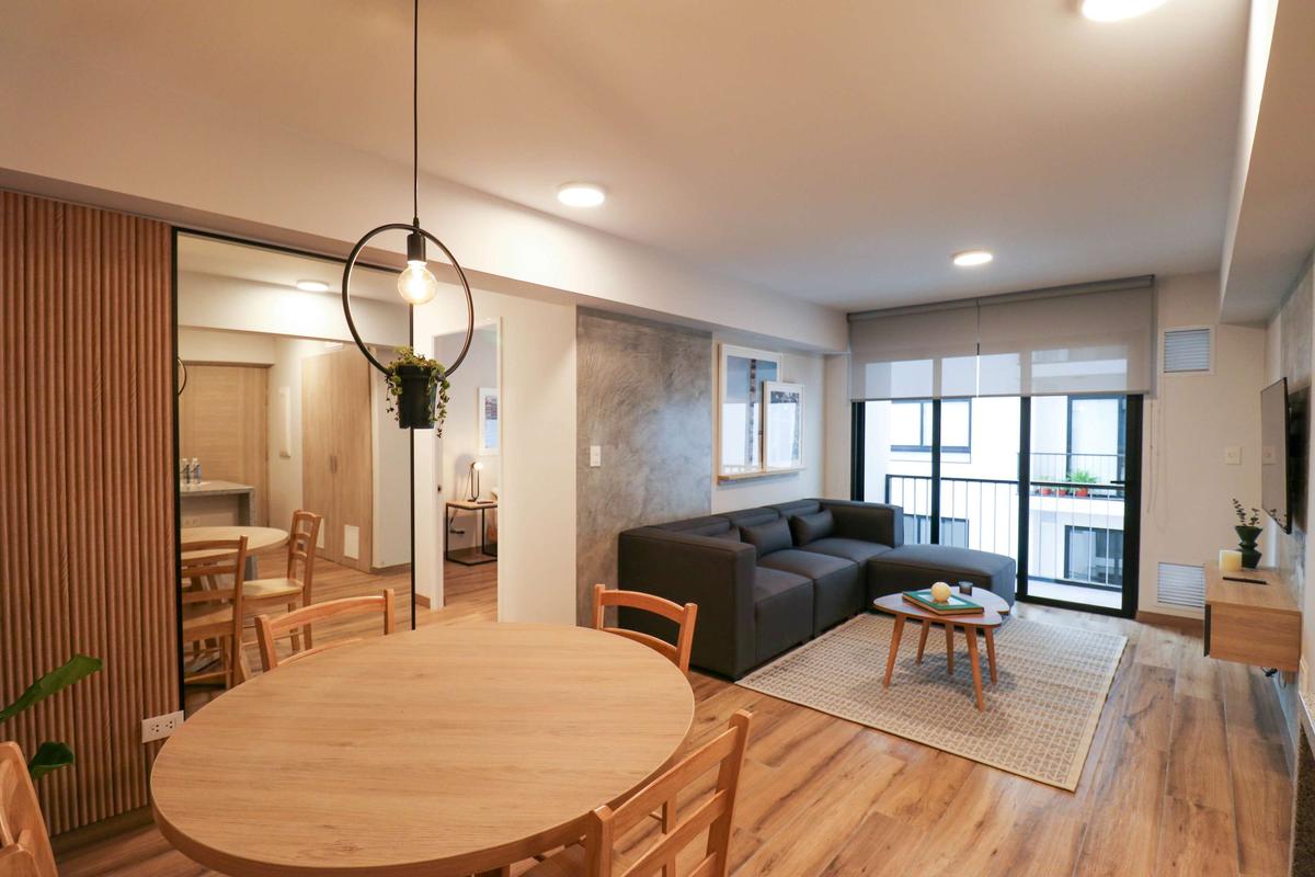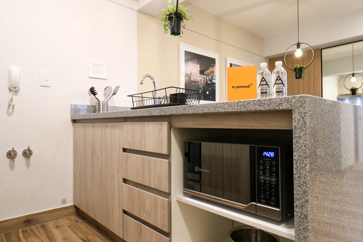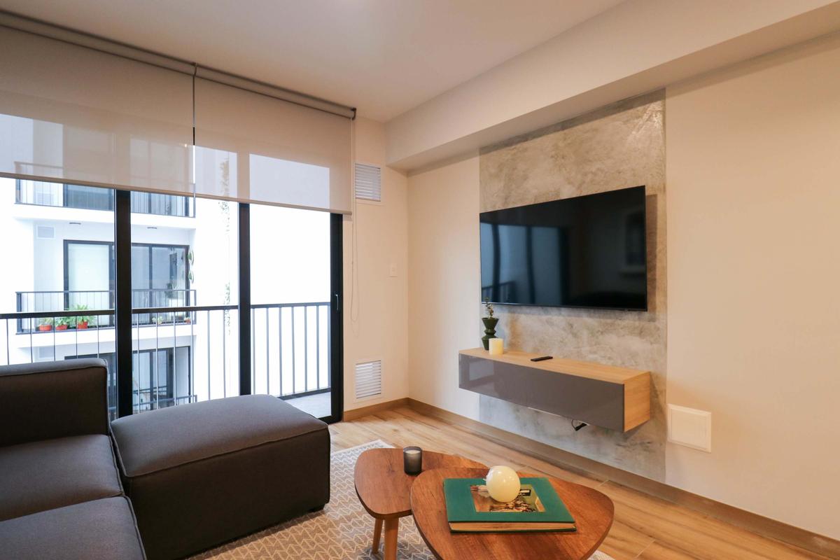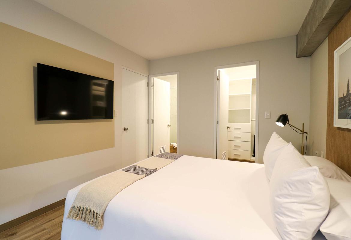 In the welcoming Miraflores neighborhood, this beautiful apartment it's very well located; just minutes away from Larcomar shopping center, Parque Kennedy, Virgen de Fatima Parish, and exclusive gyms. The area has currency exchange services, and labs centers in case you need to take a test, such as ROE and Multilab.
