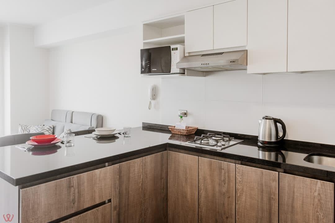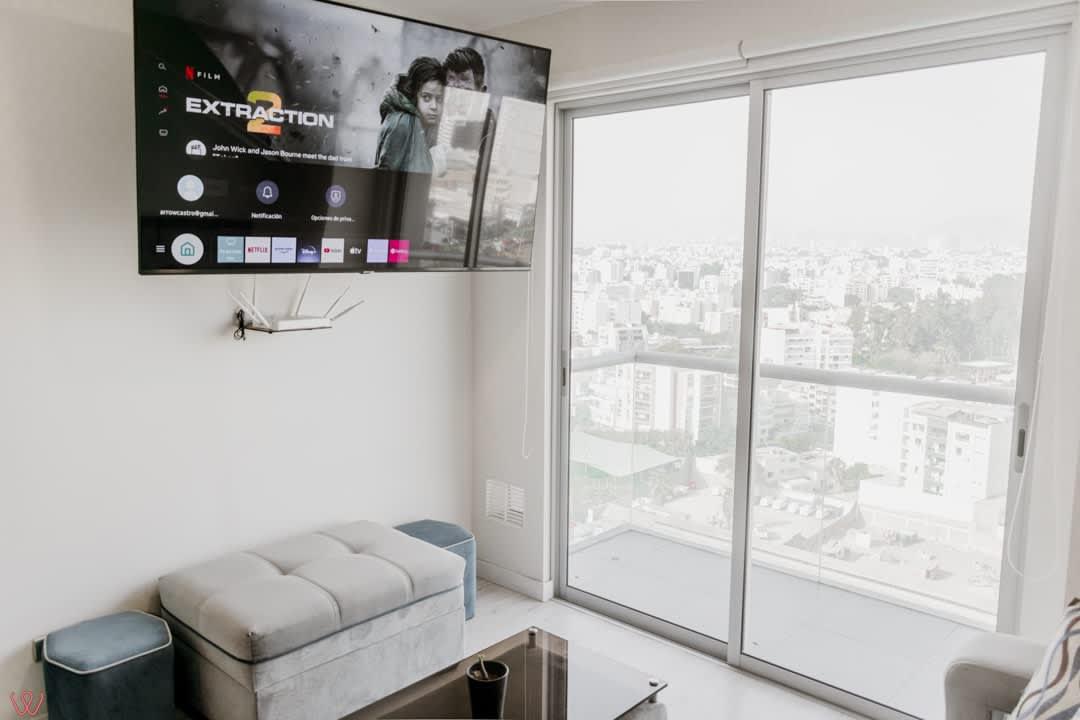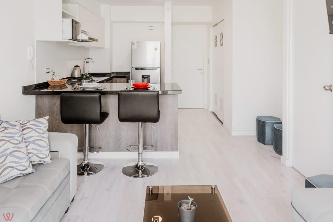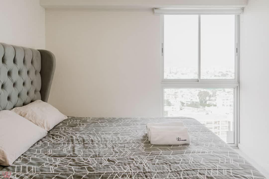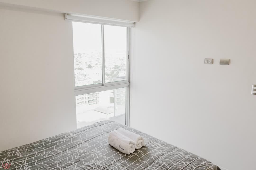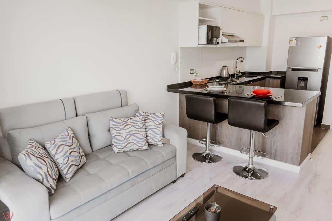 Contemporary and stylish apartment in Surquillo, ideal for couples or solo travelers. Features a bright bedroom with a queen bed, a full bathroom, high-speed Wi-Fi, and a fully equipped kitchen. Located on the 21st floor of a secure building with elevator access and an amazing panoramic view. Minutes from Miraflores, San Isidro, shops, restaurants, and public transport. Great for business trips, vacations, or extended stays.