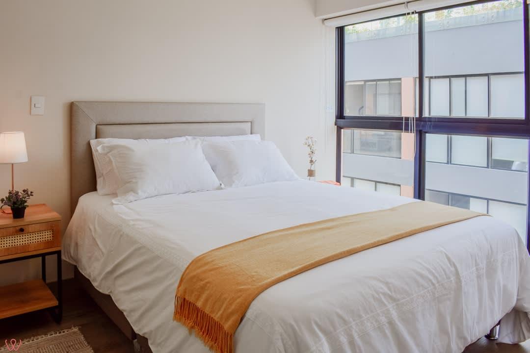 Brand new, modern apartment in Santiago de Surco, ideal for 3 guests. It features one bedroom, a full bathroom, an equipped kitchen, and access to common areas such as the pool, jacuzzi, gym, terrace with grill, and more. Located in a safe and quiet area. Perfect for a comfortable and pleasant stay! The management now requires a 400 soles deposit to reserve the grill, lounge, and gourmet areas. The pool, gym, and coworking space do not require a deposit or payment.
