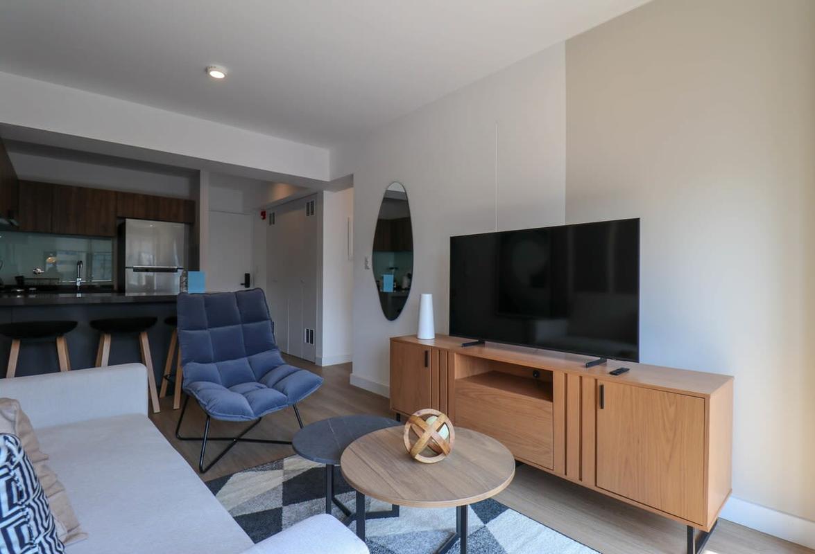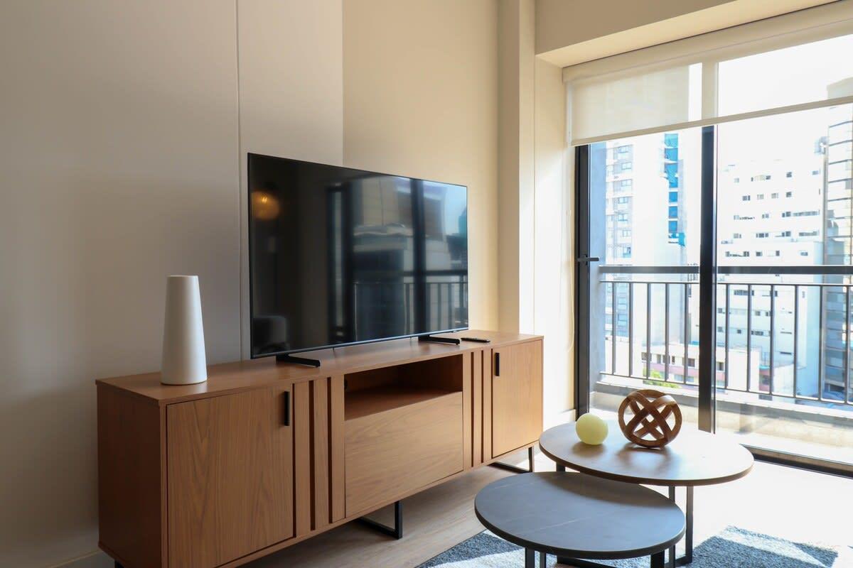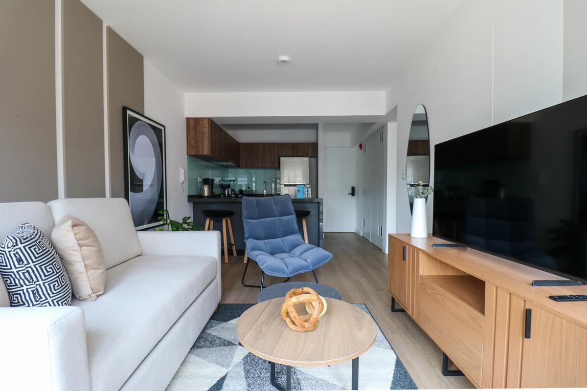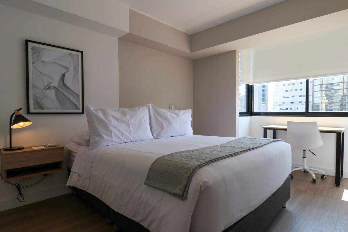 Located in the center of San Isidro's financial district, this beautiful apartment features premium queen size bedding and a comfortable living room equipped with a modern smart TV & streaming services.