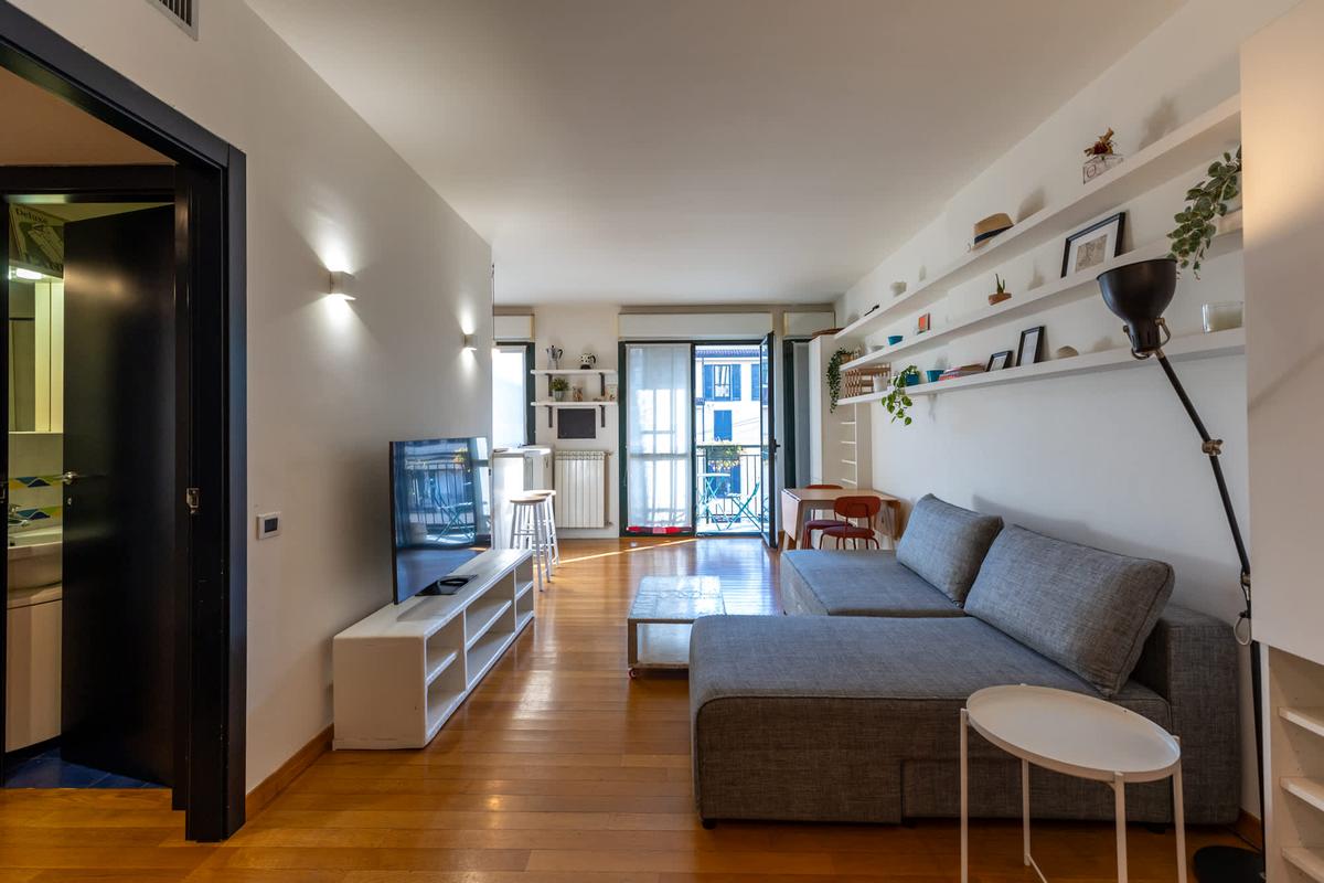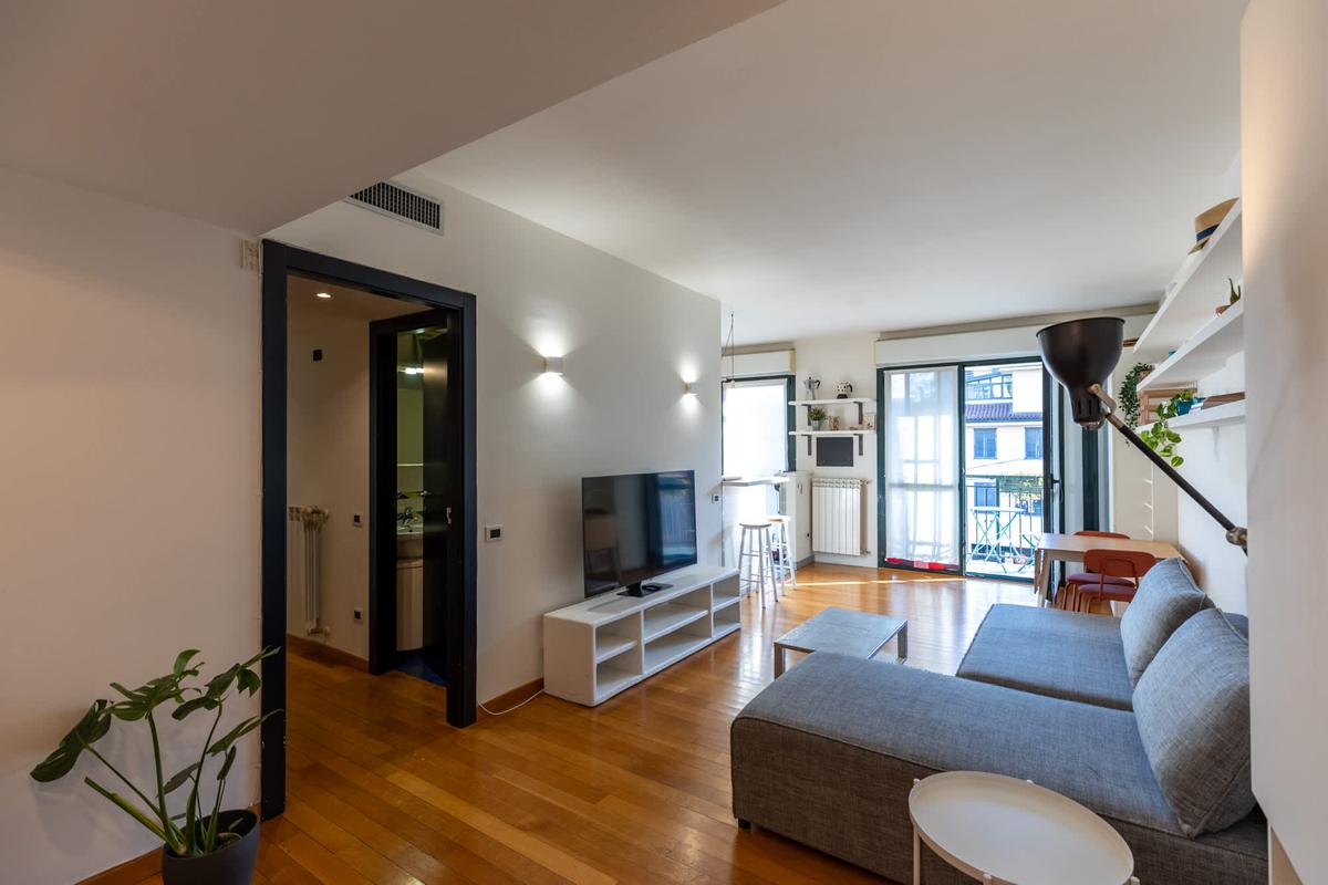 The apartment is located in the Navigli district, one of the most beloved areas of Milan thanks to its unique atmosphere. The historic canals, originally developed during the Renaissance period, create a picturesque setting that today hosts restaurants, bars, art galleries, and independent boutiques.