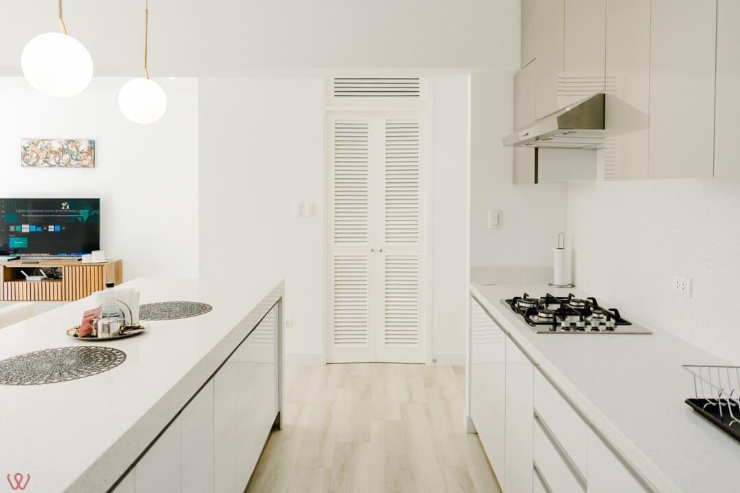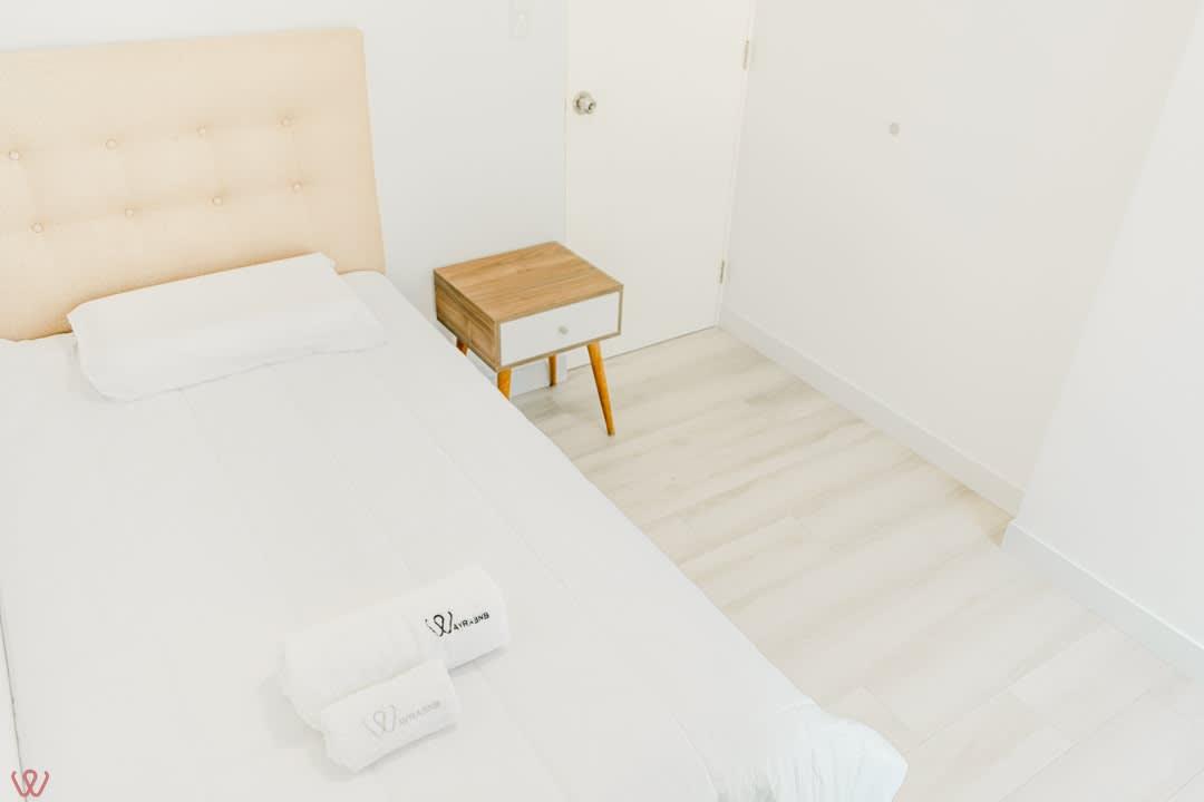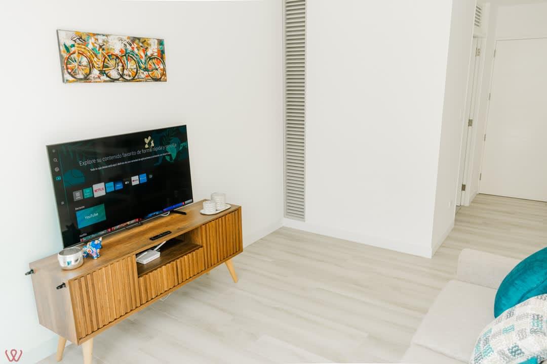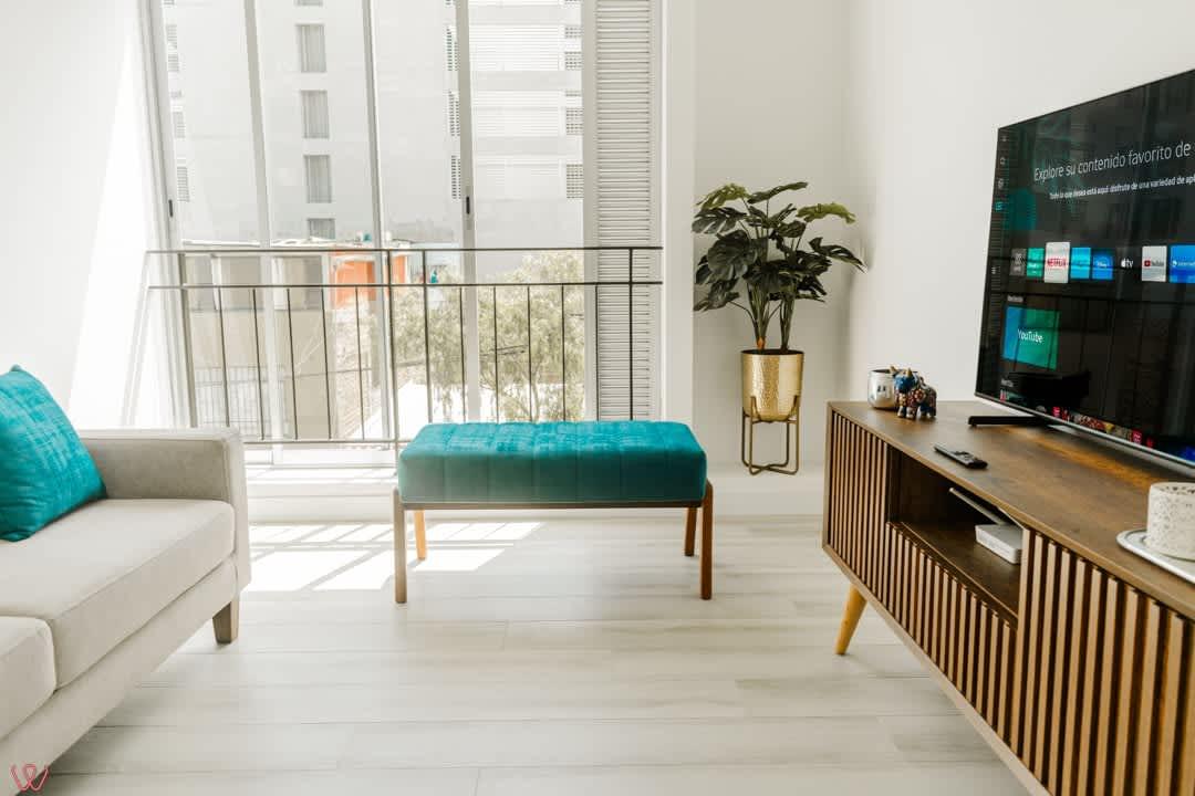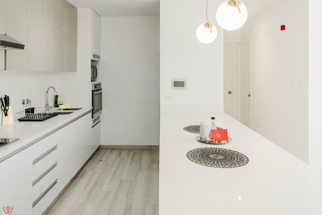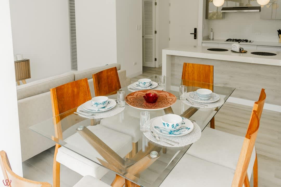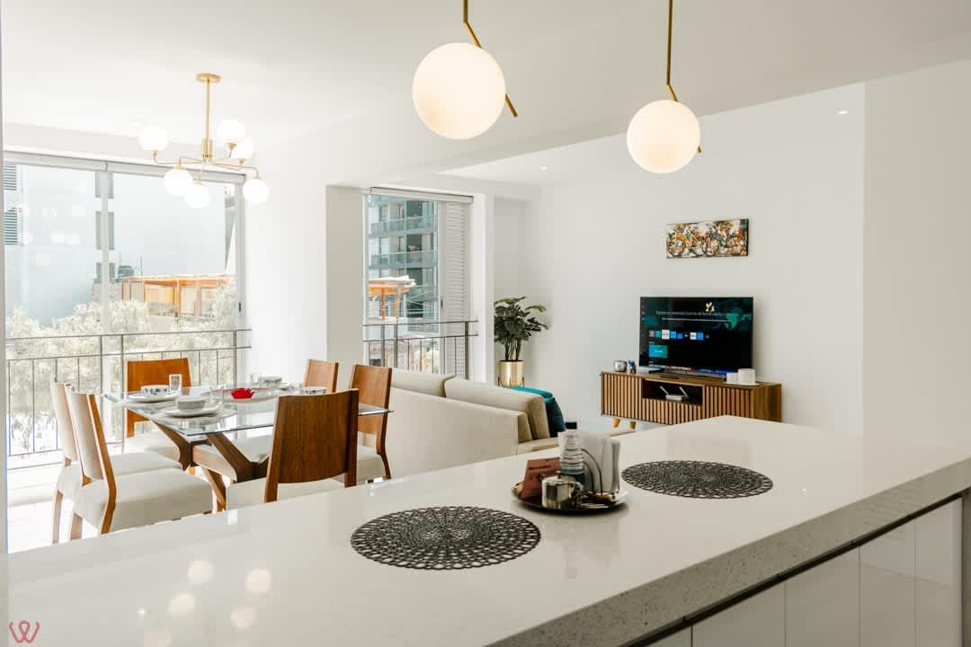 Elegant two-bedroom apartment located in one of the best areas of Miraflores. It features a queen-size bed, a single bed, two full bathrooms, a spacious living and dining room, an equipped kitchen, and Wi-Fi. Located on Avenida General Mendiburu, just minutes from the Malecón, parks, restaurants, and shops. Ideal for business or leisure stays, with easy access to transportation and Lima's main attractions.