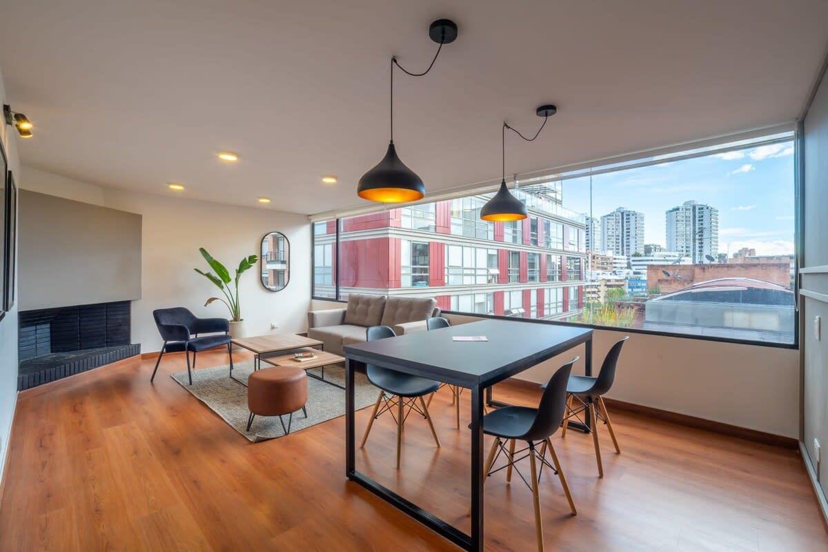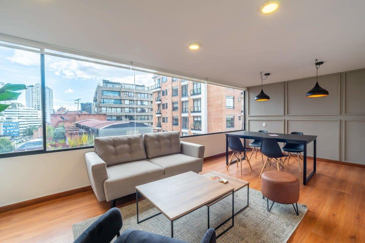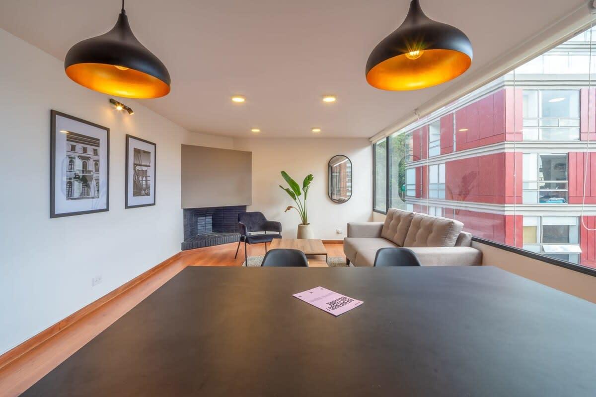 Located in the best area of Bogotá, near Parque Virrey. Ideal for business trips, couples or solo travelers who want to stay in a spacious modern Penthouse with a private terrace. You will be walking distance from the shopping center (Andino), restaurants, top gyms, supermarkets, bars and coffee shops in the city.