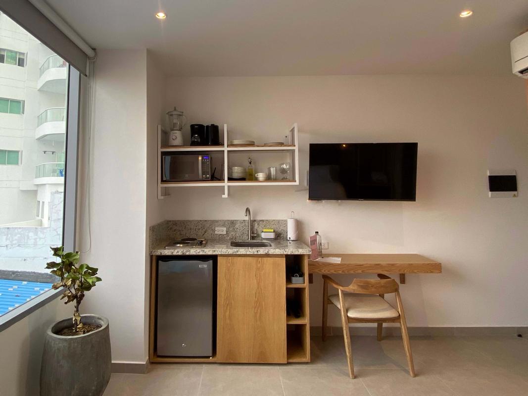 This modern and cozy apartment is located in the heart of Cartagena de Indias, at Carrera 2 #10-113, just minutes away from the city’s main tourist attractions and beaches. My apartment is located within the San Martin building, right next to the Farmatodo store. Perfect for those looking to enjoy the warmth of the Caribbean with the comfort of a functional and well-decorated space. With capacity for 6, it offers everything needed for a memorable stay, featuring contemporary décor, quality services, and a prime location in the city center. Please take in consideration that during your stay, no visitors or updates are allowed. Note: This listing is made up of individual units located right next to each other, all within the same building. It’s a perfect setup for groups who want to enjoy their stay together while still having the privacy of separate apartments.