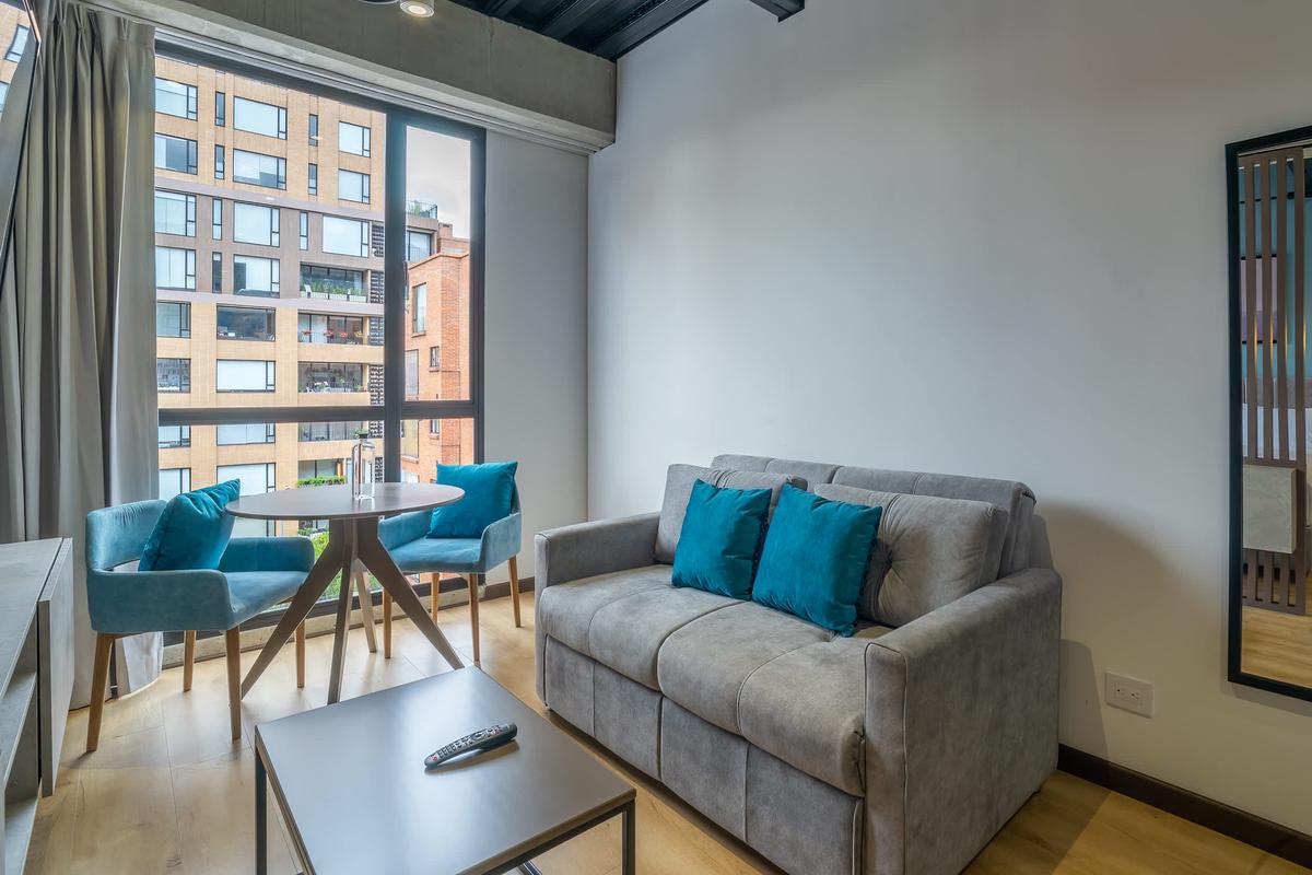 This apartment is in an Aparthotel multiunit listing, pictures are a reference. The actual apartment might be in a different floor or have a different view. Located in the best area of Bogotá. Ideal for business trips, families and groups of friends who want to stay in a spacious modern loft. The apartment features a queen bed also a safe box.